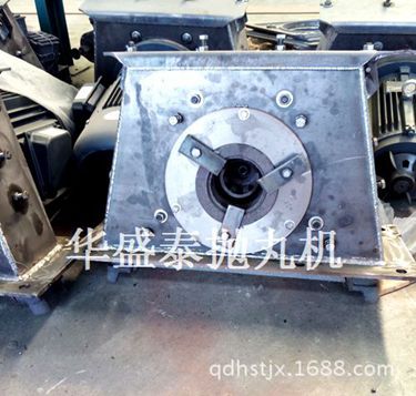 拋丸器中的雙圓盤鉚接成一體,構(gòu)成葉輪體。葉輪體上裝有八片葉片,葉輪體與位于拋丸輪中心的分丸輪一起裝在由電動機驅(qū)動的主軸上。罩內(nèi)襯有護板,罩殼上裝有定向套及進丸管。工作時,彈丸由進丸管流入拋丸器。跟葉片作同步旋轉(zhuǎn)的分丸輪使彈丸得到初速度。彈丸經(jīng)定向套的窗口飛出,拋到定向套外面的高速旋轉(zhuǎn)的葉片上,被葉片進一步加速后,拋射到被清理工件的表面上。因為分丸輪和葉片作同步旋轉(zhuǎn)保證了彈丸向葉片的無振動傳遞,從而減小了對葉片的磨損。